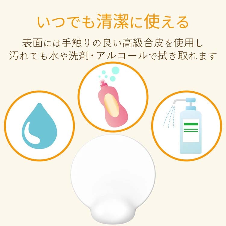 ●表面には手触りの良い高級合皮を使用しています。汚れても水や洗剤・アルコールで拭き取ることができるので、いつでも清潔に使用可能です。