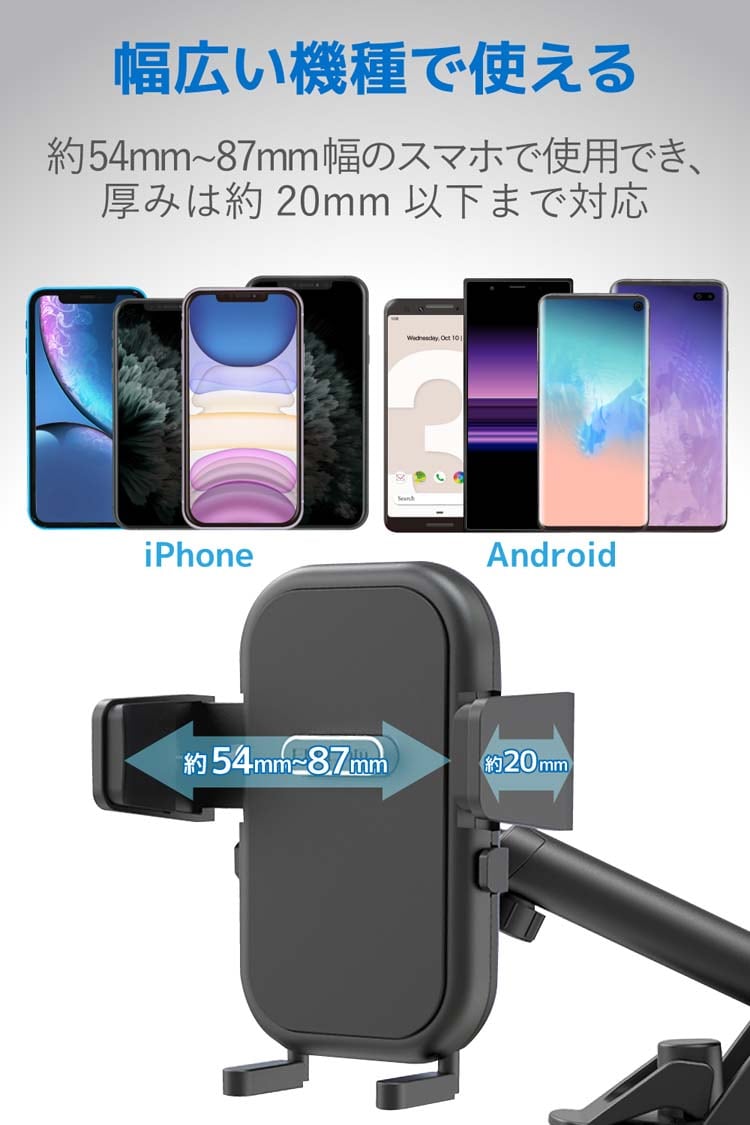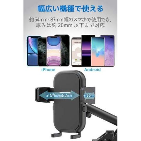 ●横幅54mm~87mmまでのスマートフォンを設置可能です。