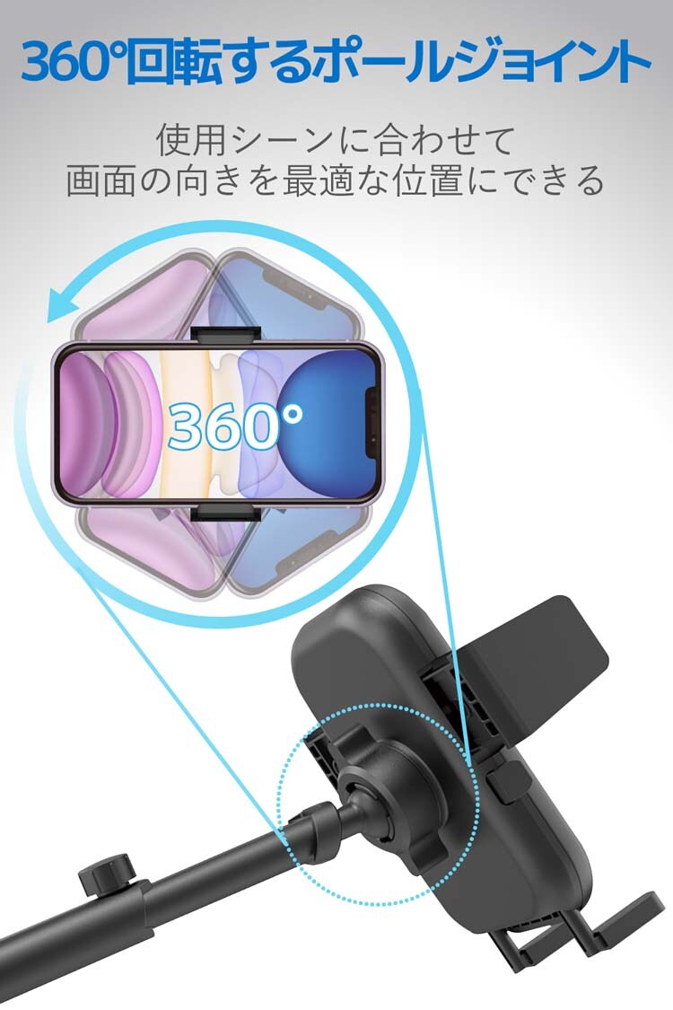 ●ボールジョイントを採用していますので、360度回転や自由な角度に調整し、固定することができます。