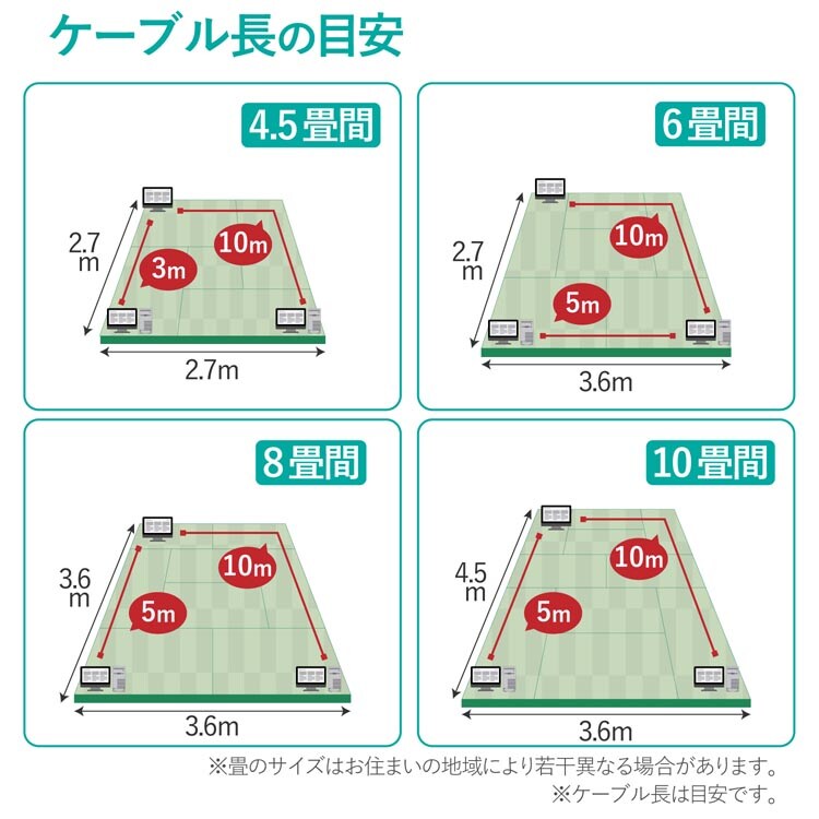 ●カーペットの下やドアの隙間に配線できる薄さ約2.3mm、幅約7.2mmのフラットタイプです。