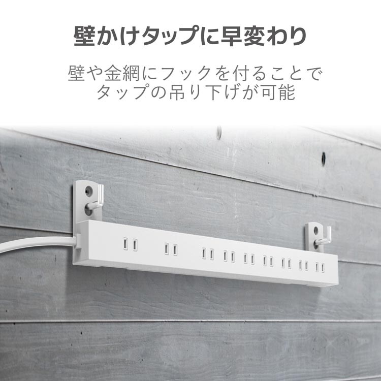 【エレコム 延長コード 電源タップ 10個口 5m 2ピン 雷ガード ホワイト ECT-0105WHの商品詳細】