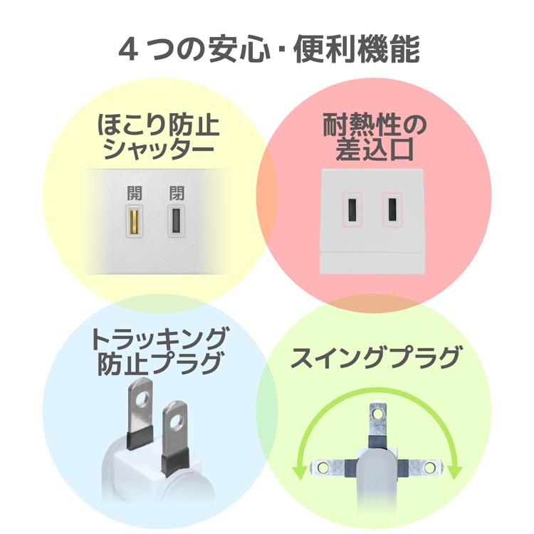 ●プラグ仕様は2ピン式で、差込口は便利な10個口タイプです。