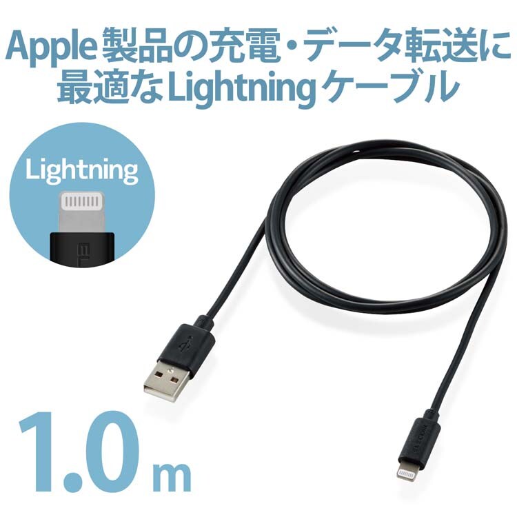 エレコム iPhoneケーブル ライトニングケーブル 1m iPad データ通信 Lightning BK (1本)