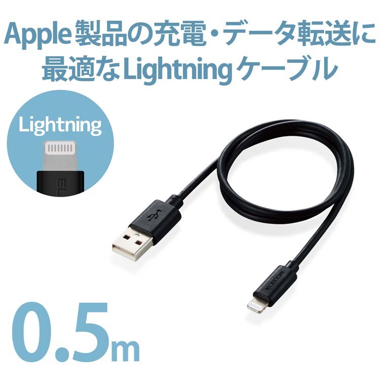 エレコム iPhone ライトニングケーブル 50cm iPod 充電 ブラック MPA-UAL05BK (1個)