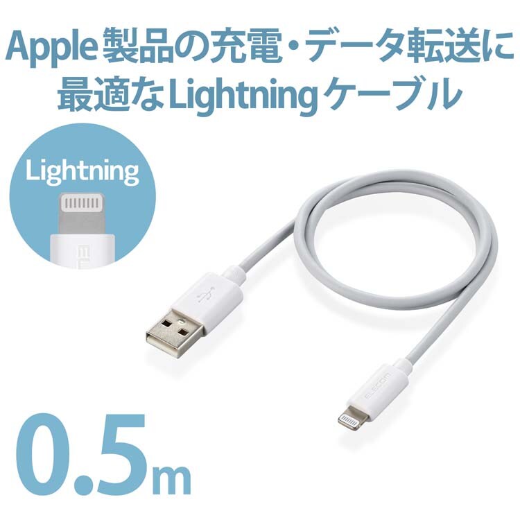 エレコム iPhone ライトニングケーブル 50cm iPod 充電 ホワイト MPA-UAL05WH (1個)