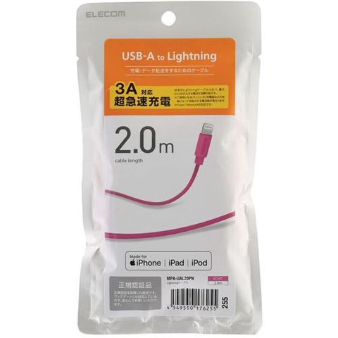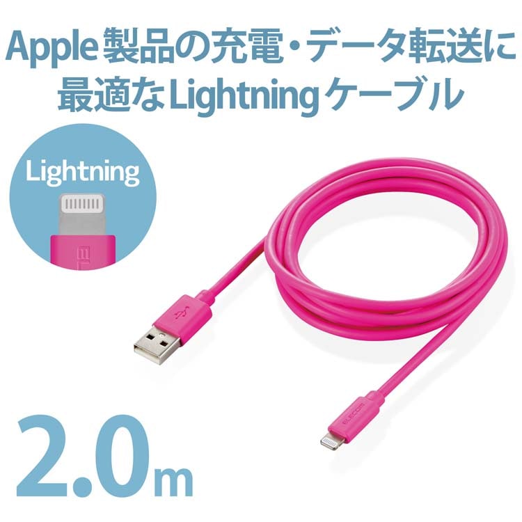 【エレコム iPhone ライトニングケーブル 2m iPod 充電 ピンク MPA-UAL20PNの商品詳細】