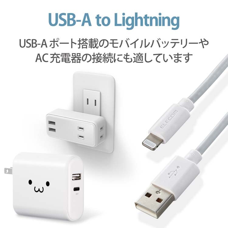 ●iPhoneやiPod、iPadなどのLightningコネクタ搭載機器とUSB-A端子を搭載しているパソコンを接続し、充電・データ通信が可能なLightningケーブルです。
