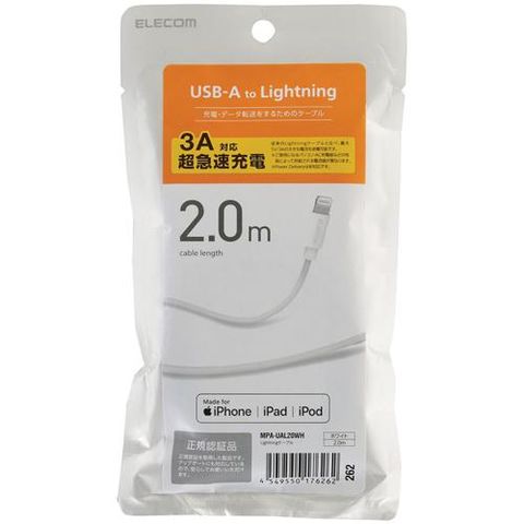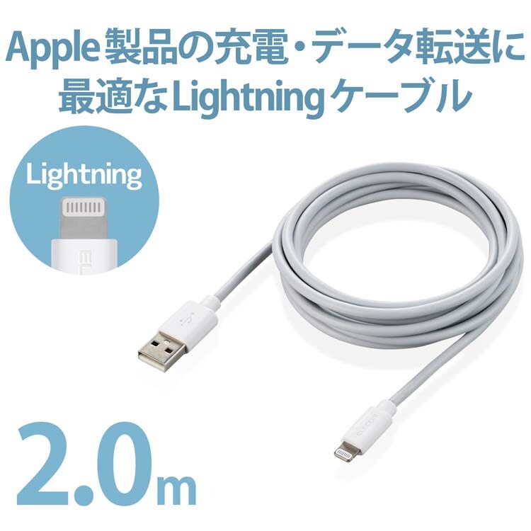 エレコム iPhone ライトニングケーブル 2m iPod 充電 ホワイト MPA-UAL20WH (1個)