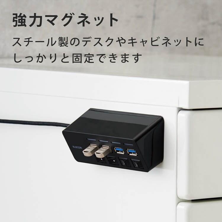 ●スチール製のデスクなどにしっかりと固定できる強力マグネットを装備しています。