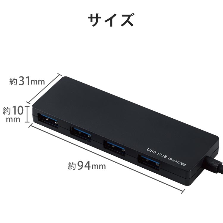 【エレコム USB3.0ハブ 4ポート バスパワー ケーブル長60cm U3H-FC03BBKの商品詳細】
