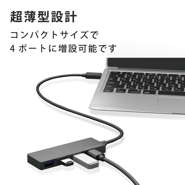 エレコム USB3.0ハブ 4ポート バスパワー ケーブル長60cm U3H-FC03BBK (1個)のレビュー