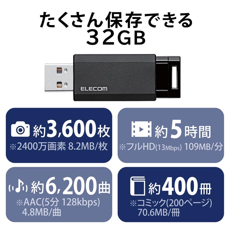 エレコム ノック式USBメモリ 32GB USB3.2 USB3.1(Gen1) ブラック MF-PKU3032GBK/E (1個)