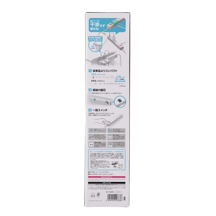 【エレコム 電源タップ 2P 10個口 一括スイッチ マグネット 5m ホワイト ECT-1550WHの商品詳細】