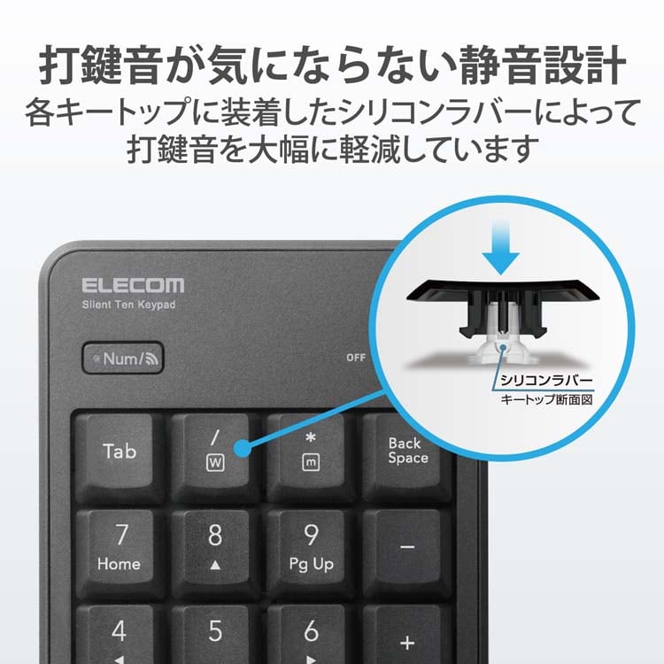 ●音が気になる場所や時間帯での使用に適したBluetooth(R)静音テンキーパッドです。