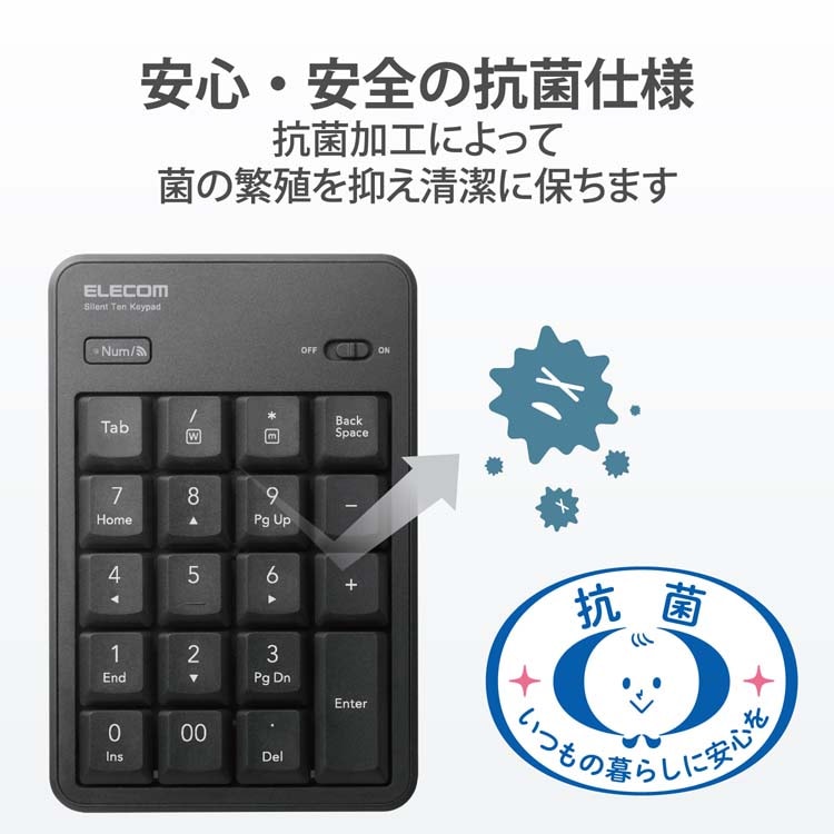 【エレコム テンキー ワイヤレス 無線 Bluetooth 抗菌 静音 ブラック TK-TBM023SKBKの商品詳細】