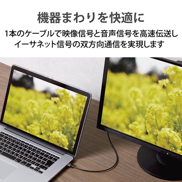 ●ケーブル直径約3.2mmで取り回しがしやすく、すっきり配線できる、スーパースリムタイプのイーサネット対応ハイスピードHDMIケーブルです。
