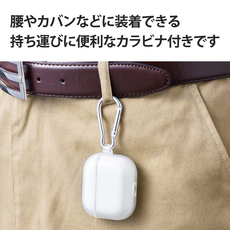 | ・対応機種:AirPods 第3世代(2021年発売モデル/ワイヤレス充電対応タイプ) ・セット内容:ケース本体*1、カラビナ*1 ・材質:ケース本体:TPU(熱可塑性ポリウレタン)、カラビナ:アルミ合金 ・カラー:クリア |