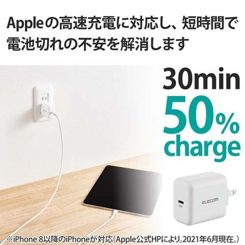 エレコム Power Delivery 充電器 30W USB タイプC 1ポート ホワイト ACDC-PD2130WH (1個)