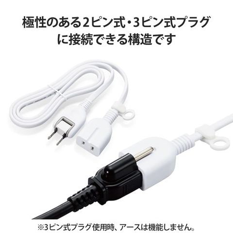 ●差込口は1個口で、極性のある2ピン式プラグ(左右のピンの幅が異なるタイプ)・3ピン式プラグも接続できる構造になっています。
