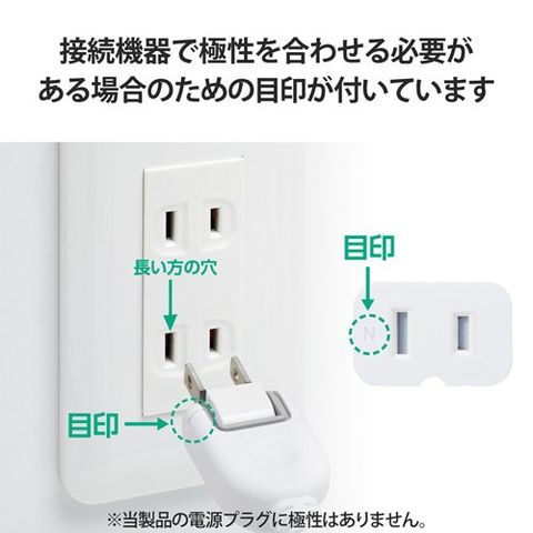 ●接続機器で極性を合わせる必要がある場合、コンセントの長い方の穴と電源プラグの目印線側を合わせて差し込んでください。