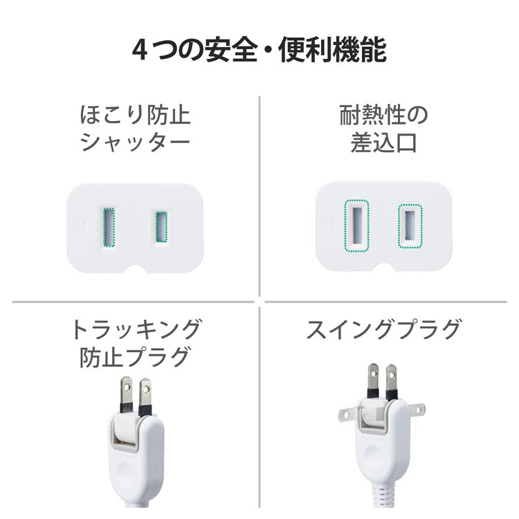 【エレコム 延長コード 電源タップ コンセント 2m 1個口 スイングプラグ ホワイトの商品詳細】