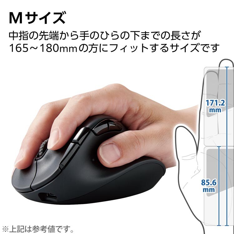 ●中指の先端から手のひらの下までの長さが165~180mmの方にピッタリとフィットするMサイズです。