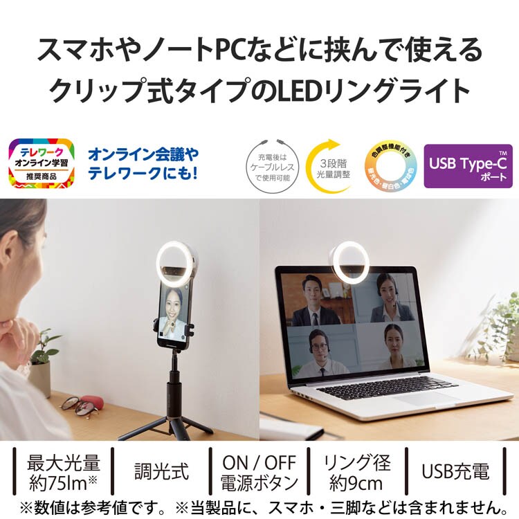●撮影・オンライン会議に最適なクリップ式のリングライトです。