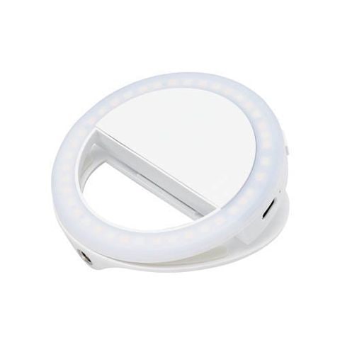 エレコム LEDリングライト クリップ式 3段階調光 USB充電式 ホワイト (1個)