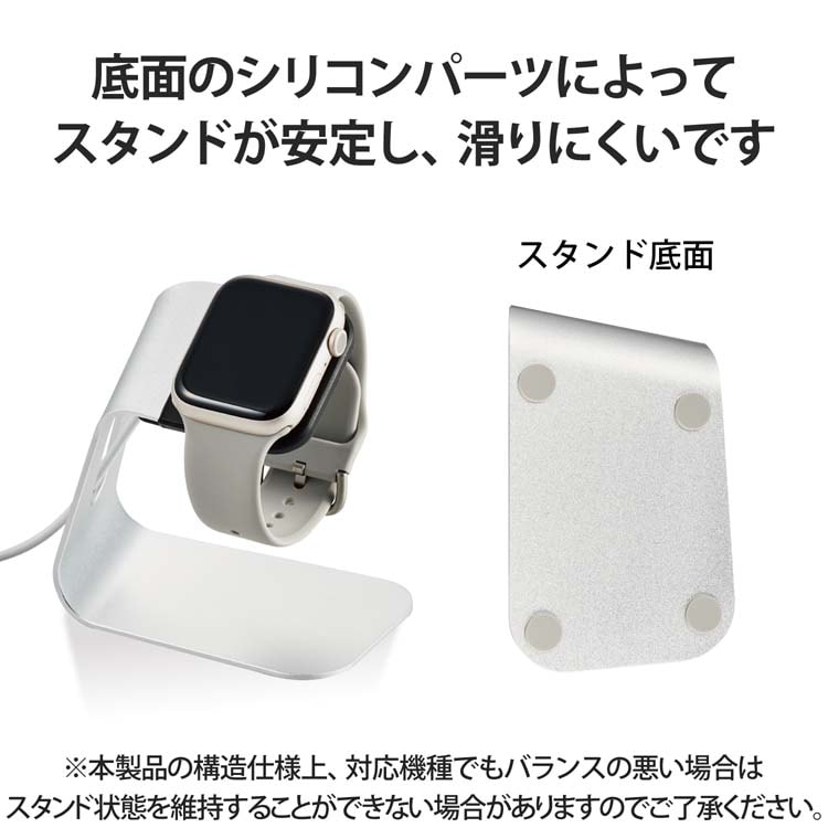 エレコム Apple Watch アップルウォッチ 充電器 卓上 スタンド アルミ製 シルバー (1個)