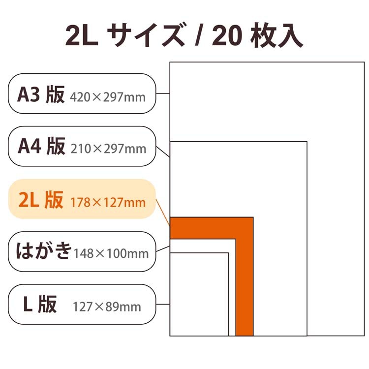 エレコム プリンター用紙 写真用紙 2L判 光沢 高グレード 厚手 ホワイト (20枚入)