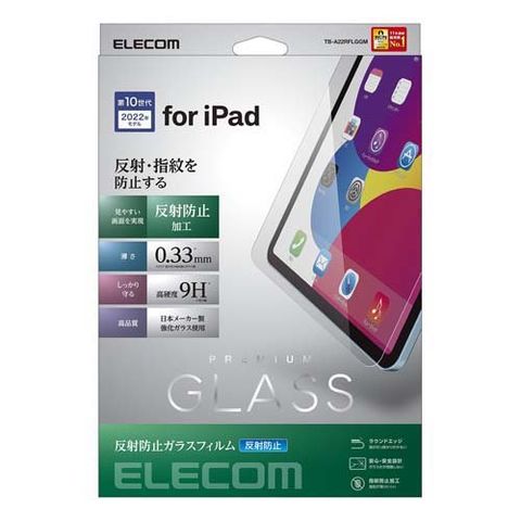 エレコム iPad 10.9インチ用 反射防止ガラスフィルム 強化ガラス 表面硬度9H (1個)