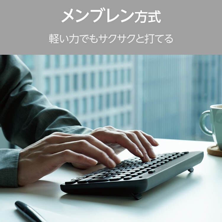 | コネクター形状:USB-A プラグ 接続方式:USB2.4GHz無線 対応機種:USBポートを装備したWindowsパソコン 対応OS(Windows):Windows 11/10 通信方式:GFSK方式 電波周波数:2.4GHz帯 電波到達距離:最長約10m ※ご使用環境により異なる場合があります。 キー配列:日本語配列 キー数:84キー キータイプ:メンブレン キーピッチ:17mm キーストローク:2mm マルチファンクション機能:あり レシーバー収納:対応 電源:単3形アルカリ乾電池、単3形マンガン乾電池、単3形ニッケル水素2次電池のいずれか1本 電池寿命:最長約2年(アルカリ乾電池使用時の目安) ※ご使用状況により異なる場合があります。 サイズ分類:ミニサイズ 外形寸法:幅約267mm×奥行約136mm×高さ約23mm(スタンド含まず)、幅約267mm×奥行約136mm×高さ約33mm(スタンド時) 重量:約310g ※電池含まず レシーバー・外形寸法:幅約20mm×奥行約16mm×高さ約6.5mm レシーバー・重量:約2g 内容物:キーボード本体×1台、レシーバー×1個、動作確認用単3形アルカリ乾電池×1本 カラー:ブラック 保証期間:1年間 |