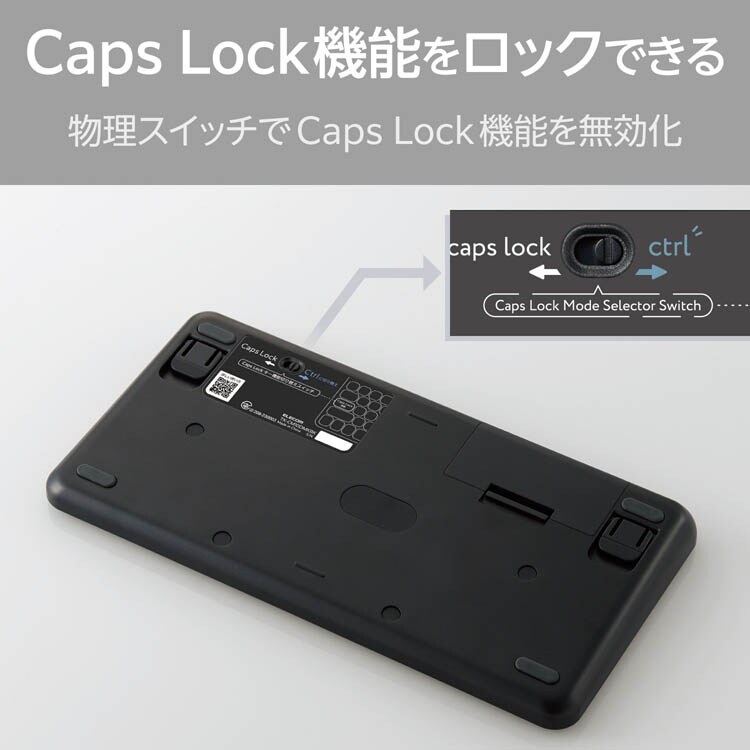 ●気づかないうちに押してしまいやすいCapsLock機能をロックできる、「CapsLock機能無効化スイッチ」を搭載しています。