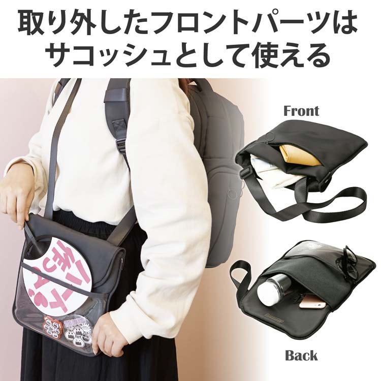 ●取り外したフロントパーツにはショルダーベルトが付いているので、サコッシュとして使えます。