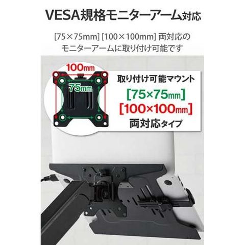 ●VESA規格(75mm*75mm、100mm*100mm)に準拠したモニターアームに取り付けることができます。