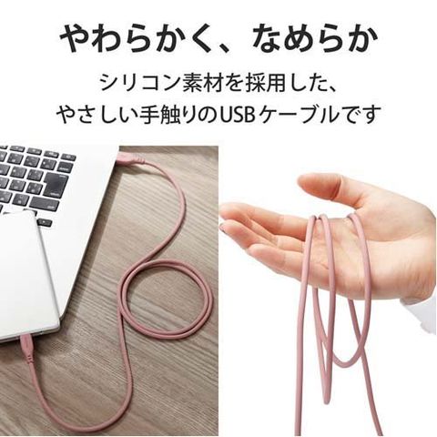 ●シリコン素材を採用した柔らかく、なめらかな手触りのUSBケーブルです。