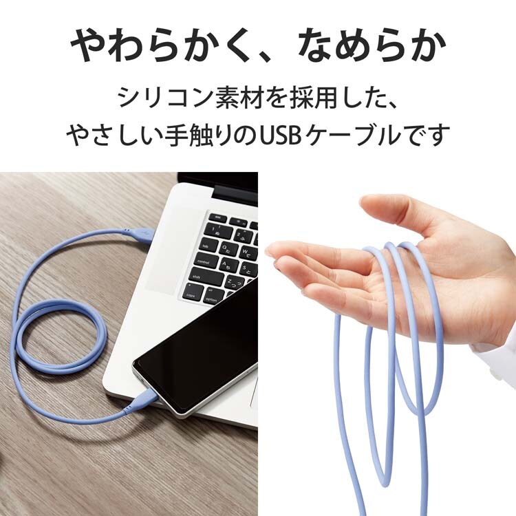 ●シリコン素材を採用した柔らかく、なめらかな手触りのUSBケーブルです。