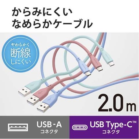 【エレコム タイプC ケーブル USB A to Type C 2m 断線しにくい ゼニスブルーの商品詳細】