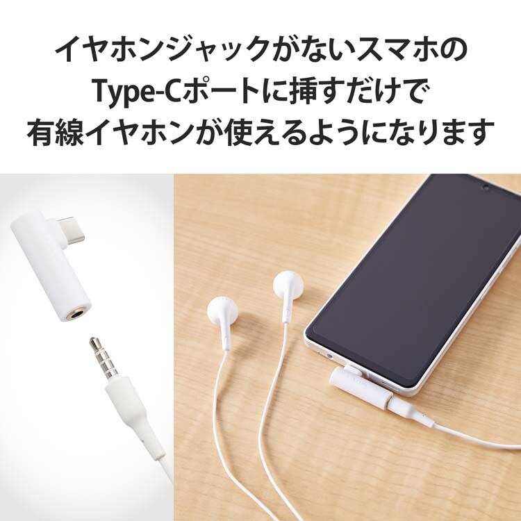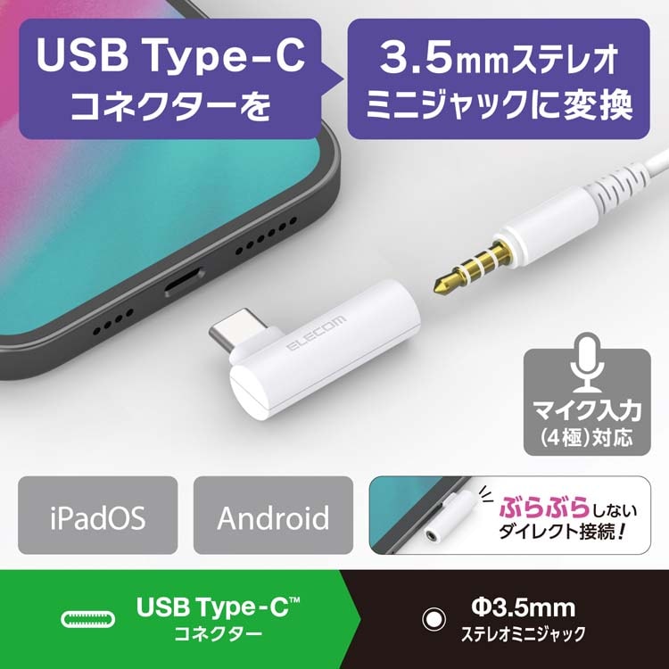 【エレコム タイプC イヤホン 変換アダプタ DAC搭載 3.5mm 4極 3極 ホワイトの商品詳細】