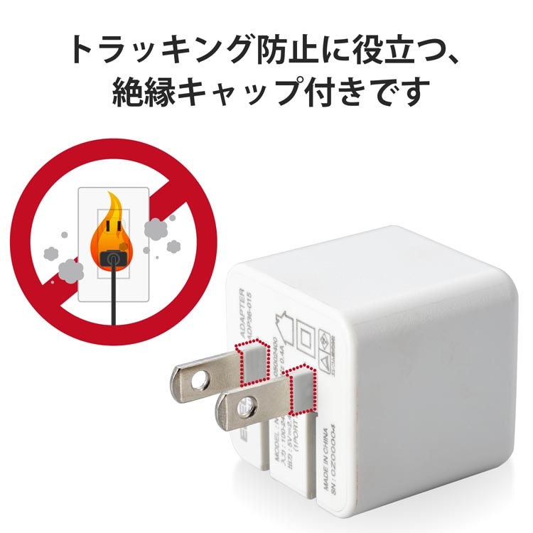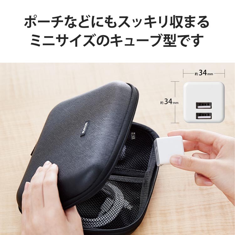 | 対応機種:2つのUSB Type-Aポートから、それぞれ最大12W(5V/2.4A)、合計最大12W(5V/2.4A)までの出力で充電、使用可能な機器とその組み合わせ コネクタ形状:USB-Aポート×2 定格入力電圧:AC100-240V 50/60Hz 定格入力電流:0.4A 定格出力電力:合計12W 定格出力電圧:5V 定格出力電流:2ポート合計2.4A、1ポート最大2.4A 外形寸法:幅約34mm×厚み約34mm×高さ約34mm ※ACプラグ収納時 重量:約44g カラー:ホワイト コンセントプラグ仕様:90度スイング構造、耐トラッキングスリーブ付 法令:◇PSE 特定電気用品 使用可能地域:日本 保証期間:1年間 その他:おまかせ充電機能搭載 |