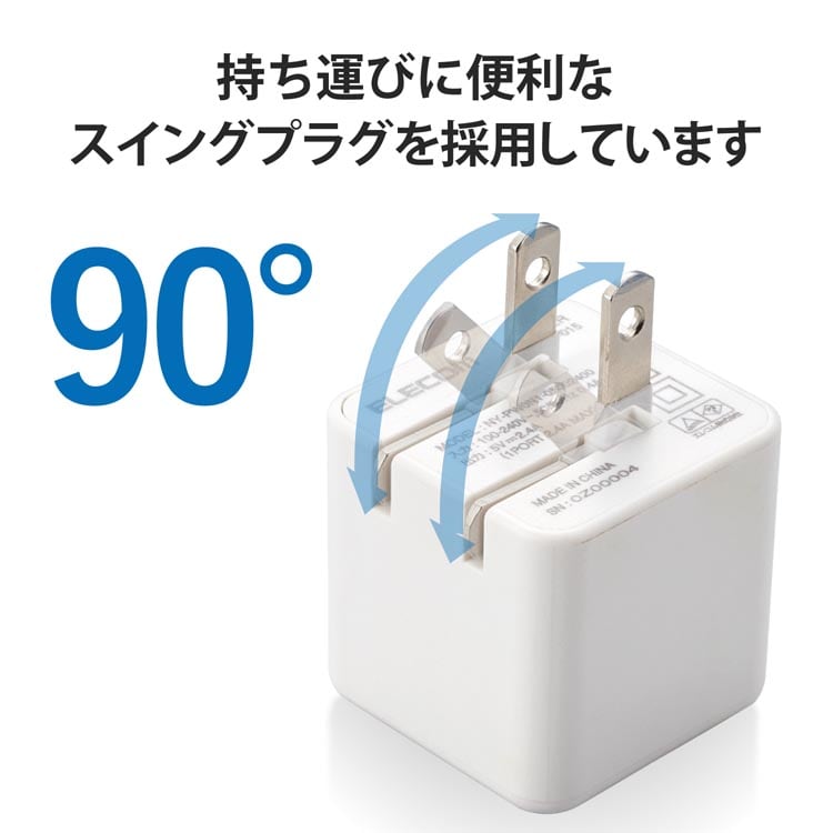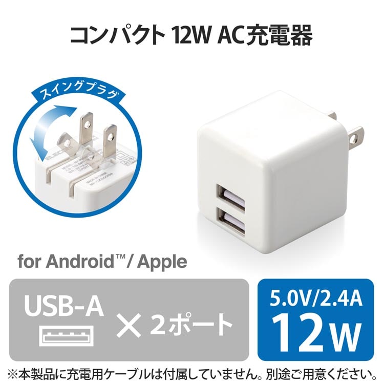 【エレコム USB充電器 合計12W 2ポート 折畳み式 ホワイト EC-AC3912WHの商品詳細】