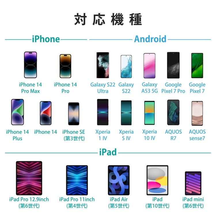 ●スマートフォン等に付属もしくは対応する充電用USBケーブルを使用して充電可能です。