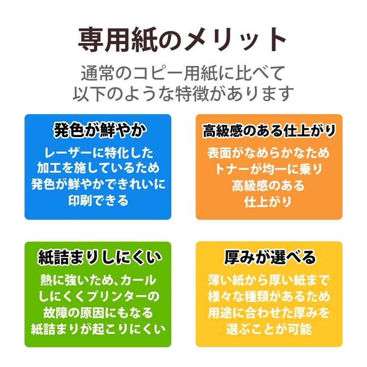 ●各社レーザープリンタ、複合機、コピー機に対応した専用紙です。