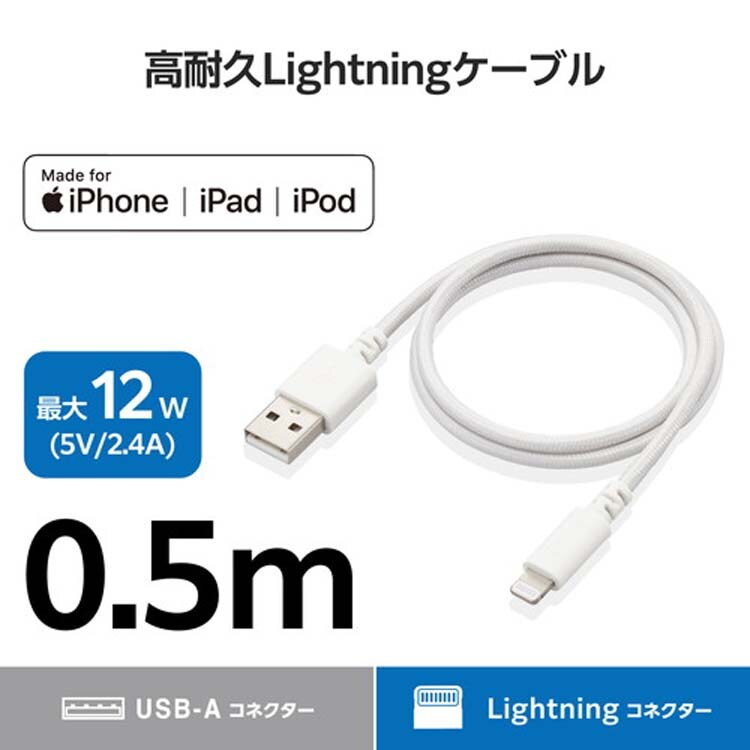 【エレコム iPhone ライトニングケーブル 0.5m MFi認証 高耐久 ホワイトの商品詳細】