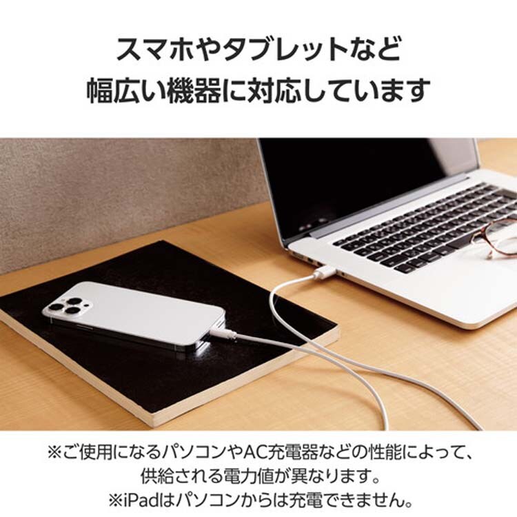 | ・コネクタ形状1:Lightningプラグ ・コネクタ形状2:USB‐Aプラグ ・使用目的・用途:USB-Aポートを持つパソコンおよび充電器とLightningポートを搭載したiPhone/iPad/iPodを接続し、充電・データ転送が可能です。 ※iPadはパソコンからは充電できません。 ・長さ:約1m ※コネクター含まず ・ケーブル太さ:約3.3mm ・対応転送速度:最大480Mbps ※理論値 ・パワーデリバリー対応:× ・対応機種(iPhone):iPhone 14 Pro Max/iPhone 14 Pro/iPhone 14 Plus/iPhone 14/iPhone 13 Pro Max/iPhone 13 Pro/iPhone 13/iPhone 13 mini/iPhone 12 Pro Max/iPhone 12 Pro/iPhone 12/iPhone 12 mini ・対応機種(iPad):iPad Pro 10.5-inch/iPad Pro 12.9-inch (2nd generation)/iPad Pro 9.7-inch/iPad Pro 12.9-inch (1st generation)/iPad Air (3rd generation)/iPad Air 2/iPad Air ・対応機種(iPod):iPod touch (7th generation)/iPod touch (6th generation) ・対応機種(その他):AirPods (第1世代)/AirPods (第2世代)/AirPods (第3世代)/AirPods Pro/AirPods Pro (第2世代)/AirPods Max ・パッケージ:袋+ステッカー ・カラー:ホワイト ・保証期間:1年間 ・環境配慮事項:EU RoHS指令準拠(10物質) |