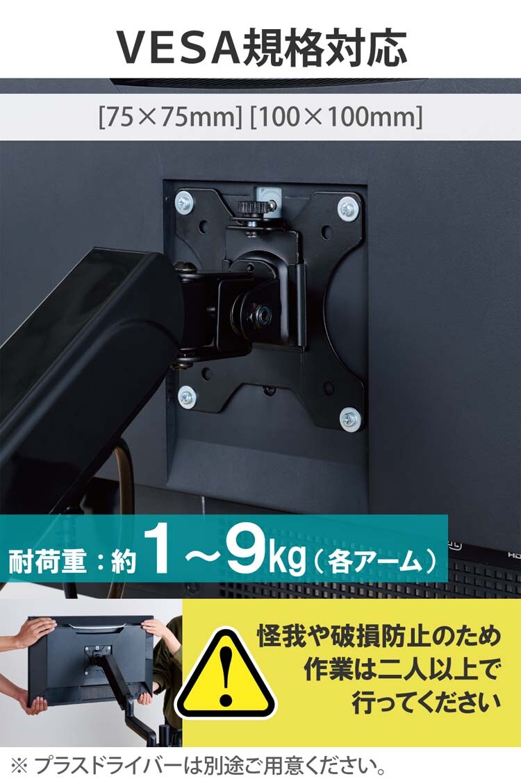●VESA規格(75mm*75mm、100mm*100mm)に準拠したモニターに対応しています。