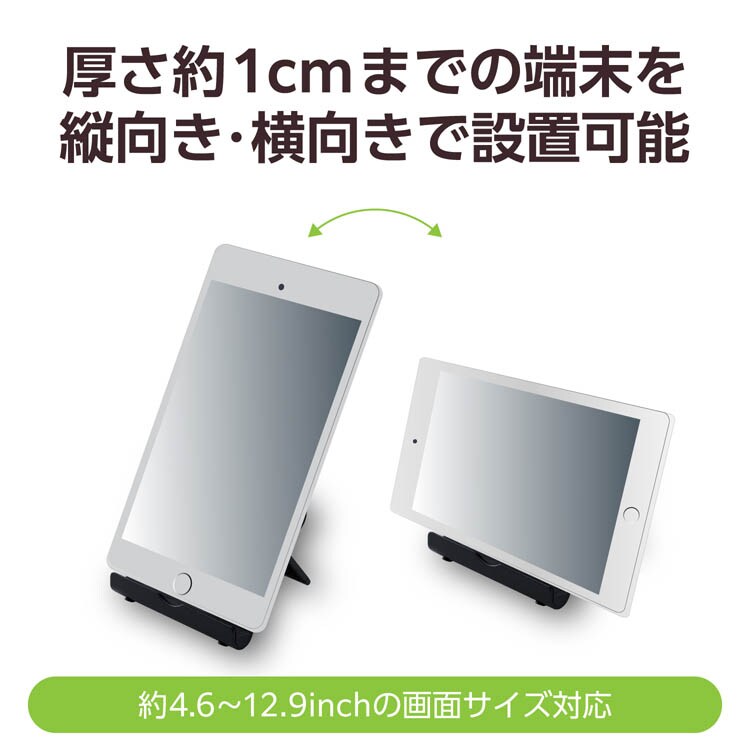 ●厚さ約1cmまでの端末を縦向き・横向きで設置可能です。