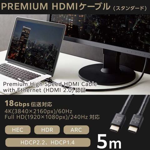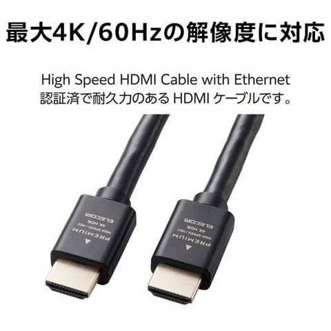 【エレコム HDMIケーブル 5m Ver2.0 プレミアム 4K2K(60Hz) eARC 黒の商品詳細】