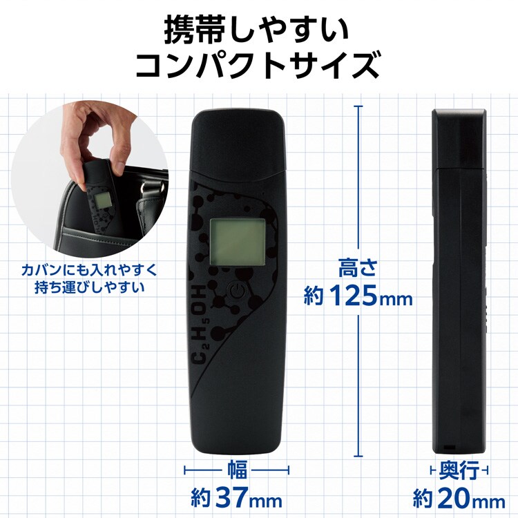 ●改正道路交通法施行規則に対応した、持ち運びに便利な小型アルコールチェッカーです。