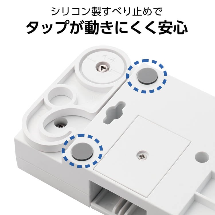 ●底部の回転パーツを出すことで、本体を水平に支えられます。重いACアダプターなどを接続した際にタップが引っ張られて横転することを防ぎます。